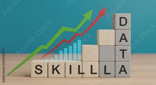 datum, skill, growth, progress, digital, age, business, success, development, ascending, arrow, block, representation, visual, concept, strategy, learning, training, career, improvement, cognition, expertise, information, technology, innovation, future, opportunity, advancement, education, competence, professional, corporate, achievement, potential, diagram, chart, graph, direction, upward, trend, market, economy, finance, investment, planning, management, solution
