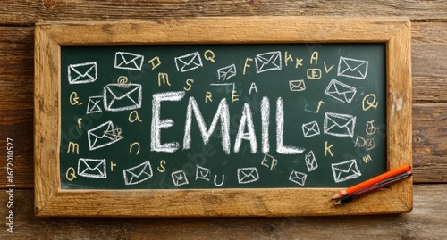 electronic mail, mail, message, communication, network, cyberspace, technology, computer, digital, letter, contact, sending, receiving, business, office, work, blackboard, board, chalk, writing, text, letter, symbol, icon, drawing, graphic, design, wood, frame, wooden, background, texture, concept, idea, online, connection, social, media, share, exchange, global, worldwide, correspondence, post, deliver, express, fast, modern