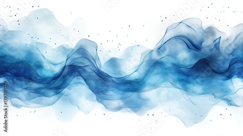 Emerald and sky blue watercolor swashes, abstract border frame for design layout, isolated on transparent background