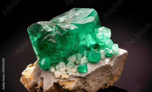 Emerald is rare precious natural geological stone on gradient background in low key, isolate. AI generated.