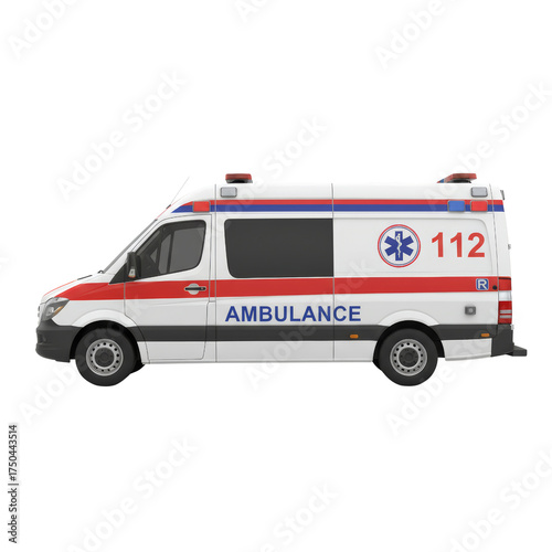 Emergency vehicle 3D rendering showcasing urgent care transport isolated on transparent setting