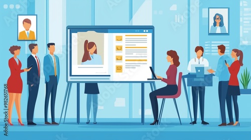 background, icon, vector, business, woman, design, banner, office, illustration, concept, team, work, meeting, character, graphic, website, web, flat, modern, management, company, interview, job, employee, manager, employment, metaphor, staff, human, career, perspective, employer, recruitment, process, hiring, resource, hr, cv, choice, agency, candidate, scene, professional, document, find, headhunter, resume, search, vacancy