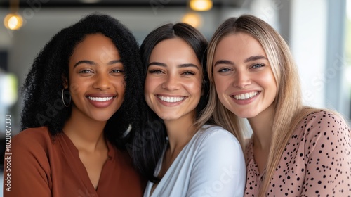 Empowered women celebrating unity and diversity in a professional setting