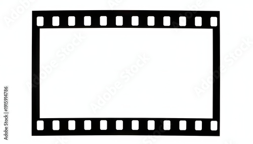 Empty black 35mm film strip frame with sprocket holes for photography presentation