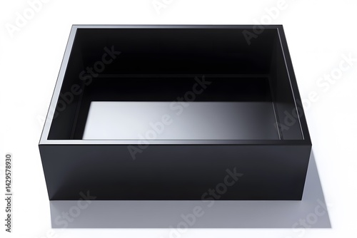 box, cardboard box, container, tray, presentation, black, square, empty, design, minimal, modern, studio shot, isolated, background, white background, simple, clean, elegant, realistic, shiny, matte, geometric, shape, object, template, marketing, advertising, commercial, graphic design, illustration, branding, showcase, black background