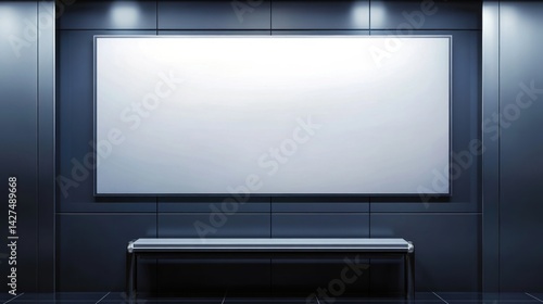 gallery, wall, display, empty, blank, canvas, modern, art, exhibit, presentation, showcase, room, space, design, interior, architecture, contemporary, decor, exhibition, lighting, illumination, framing, picture, poster, image, dark, grey, black, white, bench, seating, minimalist, neutral, background, decoration, furniture