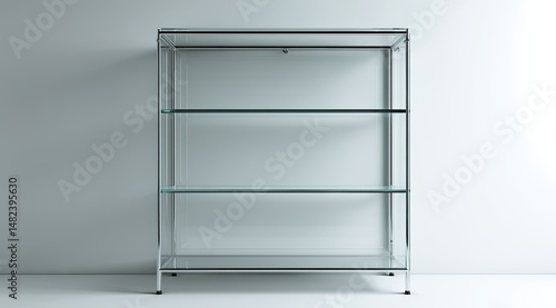 display, cabinet, glasses, shelf, empty, modern, chrome, metal, clear, interior design, furniture, contemporary, minimalist, retail, exhibition, showcase, storage, organised, clean, simple, transparent, light, white, light background, neutral, empty space, blank, commercial, aesthetic, industrial, functional, elegant