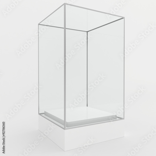Empty glass showcase for exhibit. gray background