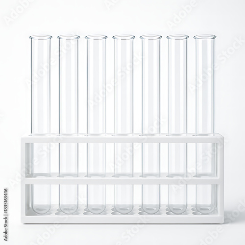 Empty Glass Test Tubes in Laboratory Rack on White Background