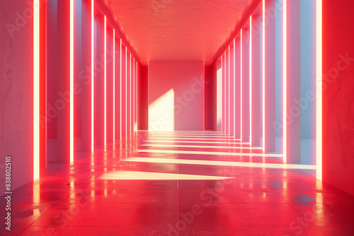 entrance, built structure, car park, ceiling, cement, computer graphic, concept, construction industry, corridor, curve, design, empty, antechamber, environment, flooring, garage, home interior, idea, illuminated, illustration, indoor, lighting equipment, modern, no people, polishing, shape, shiny, showroom, warehouse, window, ai, simplicity, red