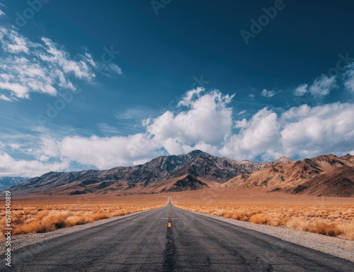 road, highway, desert, mountain, sky, cloud, landscape, empty, huge, open, horizon, travel, adventure, freedom, sunshine, scenic, nature, trip, journey, destination, view, panoramic, wide, calm, serene, peaceful, asphalt, pavement, terrain, arid, gold, brown, rocky, beauty, vista, explore, distant