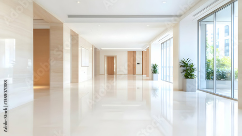Empty Modern Hallway With Large Windows