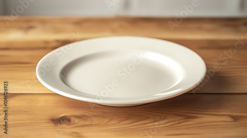 empty, plate, isolated, wooden, table, white, dish, clean, crockery, food, dinner, blank, kitchen, eatery, meal, object, dining, circle, utensil, china, lunch, round, porcelain, nobody, tableware, single