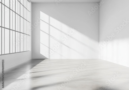 sunlight, window, shadow, interior, design, architecture, white, minimalist, modern, clean, bright, roomy, corner, floor, wall, loft, industrial, concrete, background, blank, studio, photo, display, product, showcase, presentation, copy space, neutral, simple, airy, light, room, empty, interior design, blank space, architectural