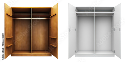 Empty wardrobe isolated on transparent background, Set of