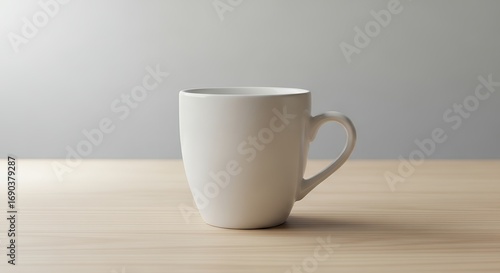 Empty White Ceramic Coffee Mug on Wooden Table Minimalist Lifestyle Still Life Photography