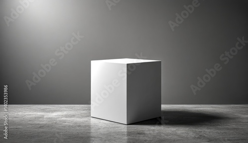 Empty White Cube Pedestal On Grey Concrete Surface With Studio Lighting