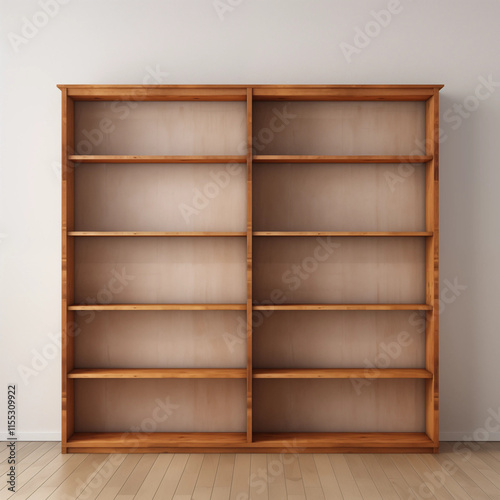 Empty Wooden Bookcase Modern Shelves Room Interior