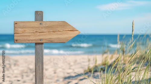 empty wooden signpost on a beautiful beach by the ocean