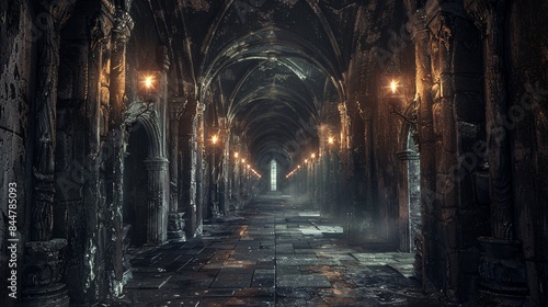 mediaeval, corridor, gothic, arch, candlelight, ancient, stone, castle, interior, mystical, history, enchantment, architecture, dark, eerie, historic, old, vintage, fantasy, mysterious, shadow, lantern, archway, ambience, masonry, heritage