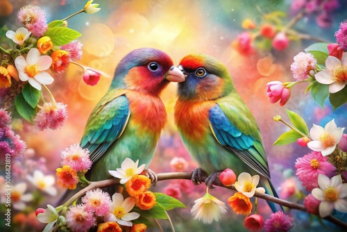 love, bird, double exposure, painting, floral, romantic, nature, art, vibrant, aethereal, dreamy, colourful, harmony, wildlife, artistic, photo, beauty, flower, atmosphere, soft, calmness, pair, affectionate, human relationships, serene, creative, captivating, enchanting, sweet, couple, elegance, charme, lovebirds, expressive, lush, high-coloured, stunning, optical, emotional