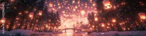 Enchanting Night Lantern Festival: Thousands of Glowing Lights in a Starry Sky Create a Magical and Dreamlike Ambiance