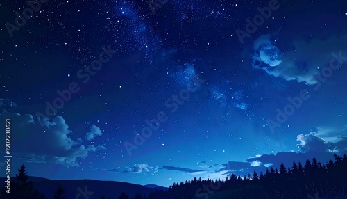 night, star, sky, dark, tree, silhouette, landscape, nightscape, blue, cloud, scenery, astronomy, celestial, twilight, evening, nature, space, horizon, pine, forest, timberland, rural, countryside, scenic, vista, panorama, view, darkness, night time, starlight, nebula, cosmos, universe, astral, aethereal, dreamy, serene, peaceful, tranquil, calm, quiet, stillness, midnight, dusk, gloaming