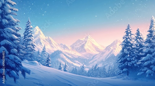Enchanting winter scenery in the mountains A celebration of the festive season with a design for seasonal greetings Background offers ample space for text