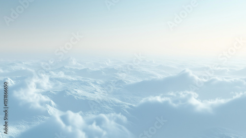 Endless waves of fluffy clouds under a soft blue sky create a serene and tranquil atmosphere.