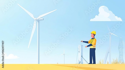 Energy Engineer Energy engineer setting up wind turbine parameters, renewable focus, no face, flat design illustration
