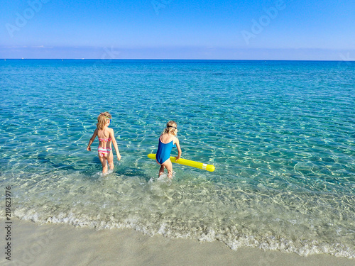 beach, sea, toddler, children, girl, corsica, water, transparent, lagoon, turquoise, game, return, bathe, blue, little girl, swim, vacation, summer
