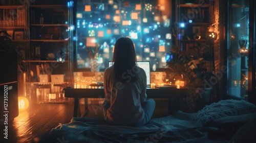 Engaging with advanced AI technologies in a cozy cyber setting at night