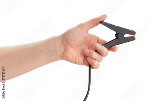clamp, cable, cut-out, finger, holding, hand, nobody, isolated, white, closeup, black, whole, 1, single, background, clipping path, clipping, path, cable, recharge, electric, starter, accumulator, charger, assistance, transport, ignition, transportation, service, clip, battery, booster, car, engine, power, jumper, energy, jump, charge, start, technology, help, wire, mobile, minus, studio