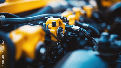 Engine mounting area with custom tools and diagnostics for heavy-duty machines