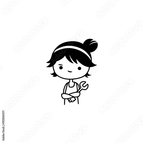 engineer, female, woman, icon, line art, logotype, silhouette, simple, art, background, black, cartoon, clip art, cute, design, drawing, element, graphic, hand-drawn, children, illustration, isolated, children, line, logotype, outline, symbol, vector, white
