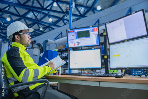 Engineer working at control room,Manager control system,Technician man monitoring program from a lot of monitor