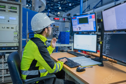 Engineer working at control room,Manager control system,Technician man monitoring program from a lot of monitor