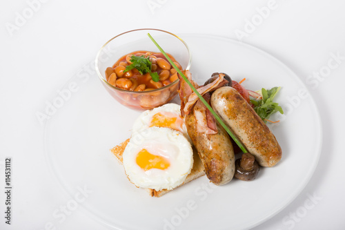 bacon, baked, bean, bread, breakfast, british, cooked, egg, english, fat, food, fried, full, greasy, grilled, hash, meal, meat, morning, mushroom, plate, pork meat, sausage, toast, tomatoes, traditional, unhealthy, up, white, yolk