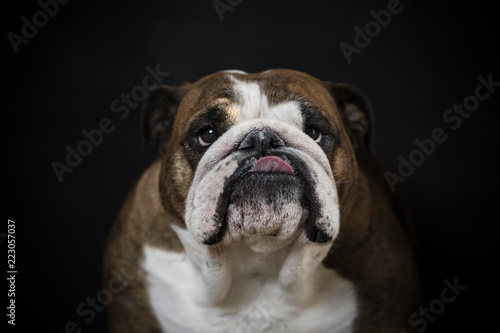 english bulldog su fondo nero