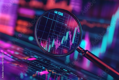 Enhancing financial insights business data analysis with magnifying glass on digital background