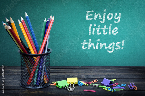 thing, enjoy, little, quote, life, inspiration, positive, happy, joy, simplicity, optimism, good, relax, motivation, concept, mood, gratitude, satisfaction, green, blackboard, drawing, chalk, lesson, message, write, dirty, advertising, text, wax crayons, crayons, word, stationery, supply, study, school, accessory, colourful, instructing, elementary, group, container, learning, desk, wooden, table, board, office, childhood