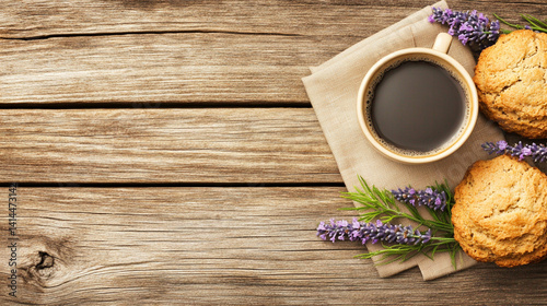 Enjoying coffee and cookies on rustic wooden table cozy environment food photography
