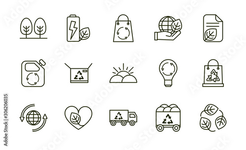 ecology, environment, icon, collection, symbol, icon, vector, illustration, signs, set, energy, recycling, eco, outline, nature, design, isolated, bio, thin, electric, technology, leaf, renewable, organic, electricity, environmental, natural, element, power