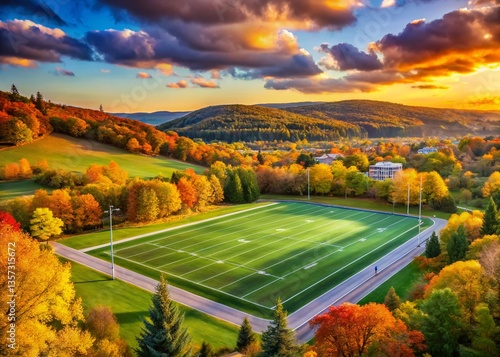 Epic Autumn Landscape: Football Field Panorama, Golden Hour Light