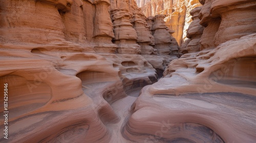 Eroded sandstone canyon walls with smooth rounded formations