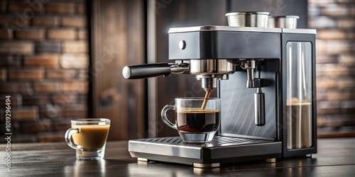 Espresso Machine Brewing Coffee Into A Glass Cup With A Second Cup In The Foreground