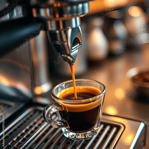 Espresso Pouring from Coffee Machine at Cafe – Close-Up of Fresh Brewed Coffee