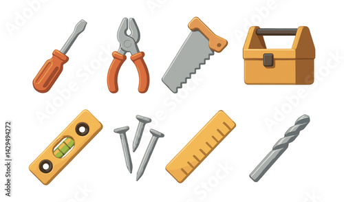 tool, icon, screwdriver, plier, saw, toolbox, level, nail, ruler, vector, drill, equipment, hardware, construction, carpenter's shop, repair, kit, utility, implement, bricolage, workshop, hand tool, engineering, craft, machinery, maintenance, industrial, design, mechanic, building, graphic, symbol, object, concept, visual, technology, professional, detailed, modern, creative, vibrant, distinct, set