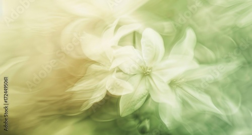 Ethereal Bloom: A delicate floral composition with soft, blurred edges, where gentle petals in dreamy tones of gold and jade dance in a display of natural elegance.