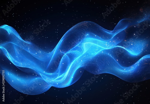 Ethereal Blue Wave Patterns on a Dark Cosmic Background Representing Energy Flow and Stardust in a Mystical Universe Setting